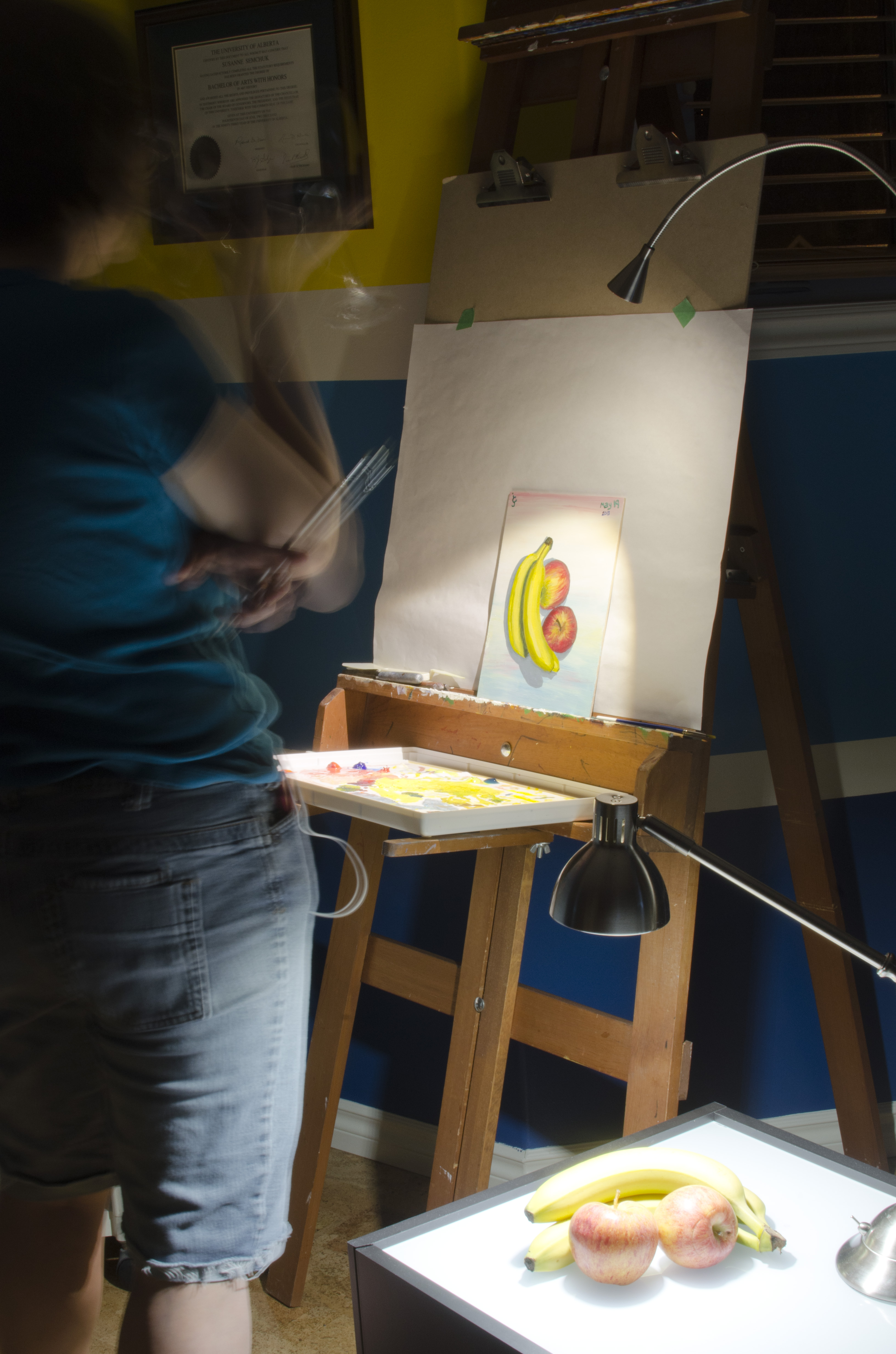 So… It’s been a long time since I devoted an evening to painting. And the results? Not bad. Not amazing. A bit pedestrian – yes. And yet it is a beginning. This is something I need to pursue – not apples and bananas or red wine specifically, but more of this. We’ll see what happens next.