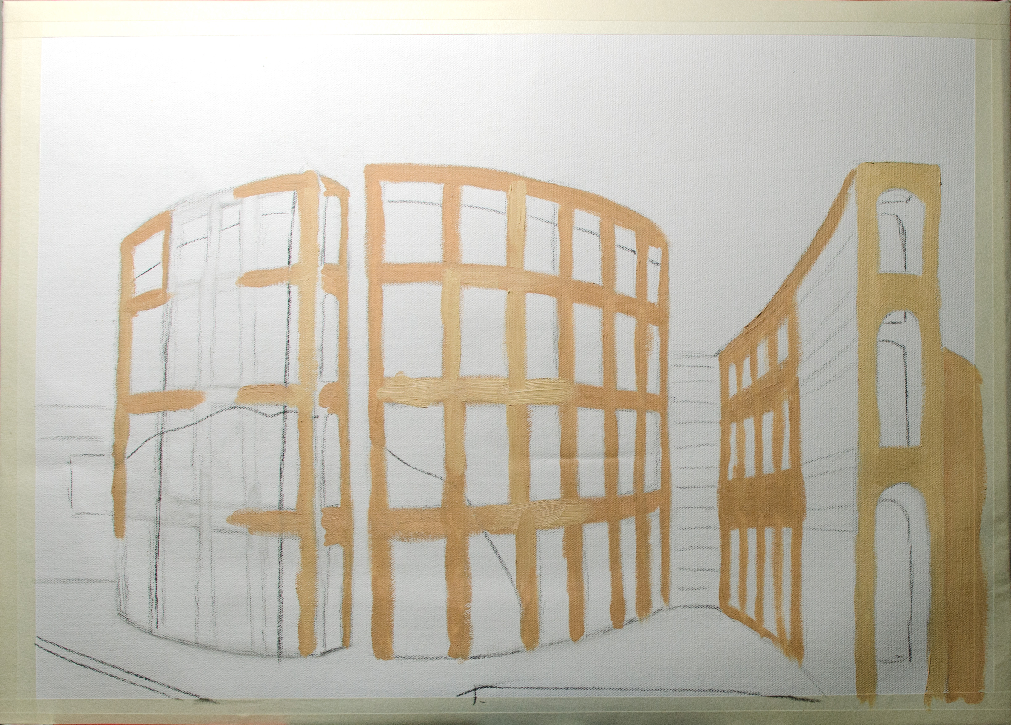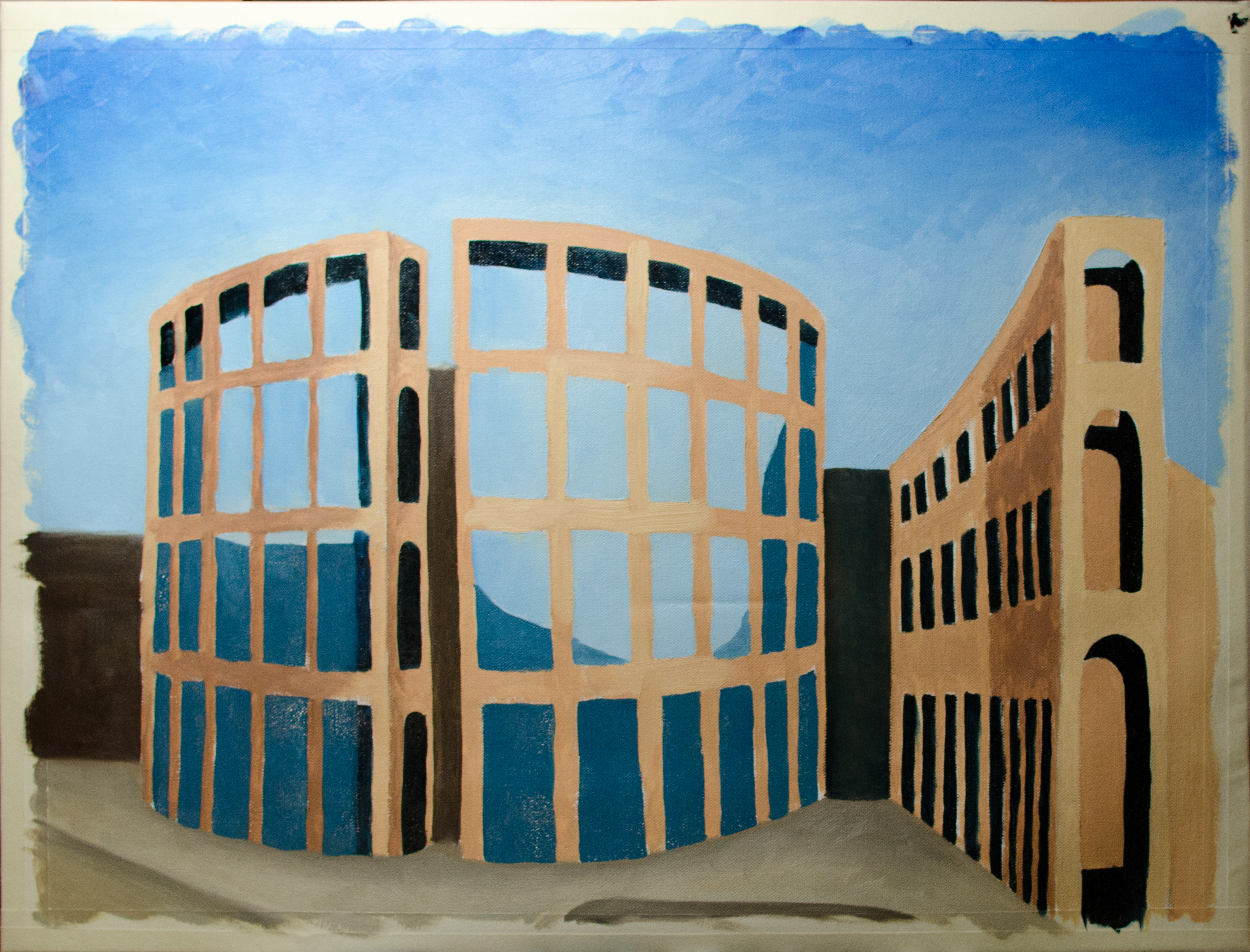 Another product of my current painting class and an attempt at architecture. If I am going to paint a building, I’m going to paint a building that I personally like to look at. The Vancouver Public Library, designed by Moshe Safdie, completed in 1995. The painting is still in progress. I hope to finish it this week and post a completed image next week. Let’s see if I can find time to do that.