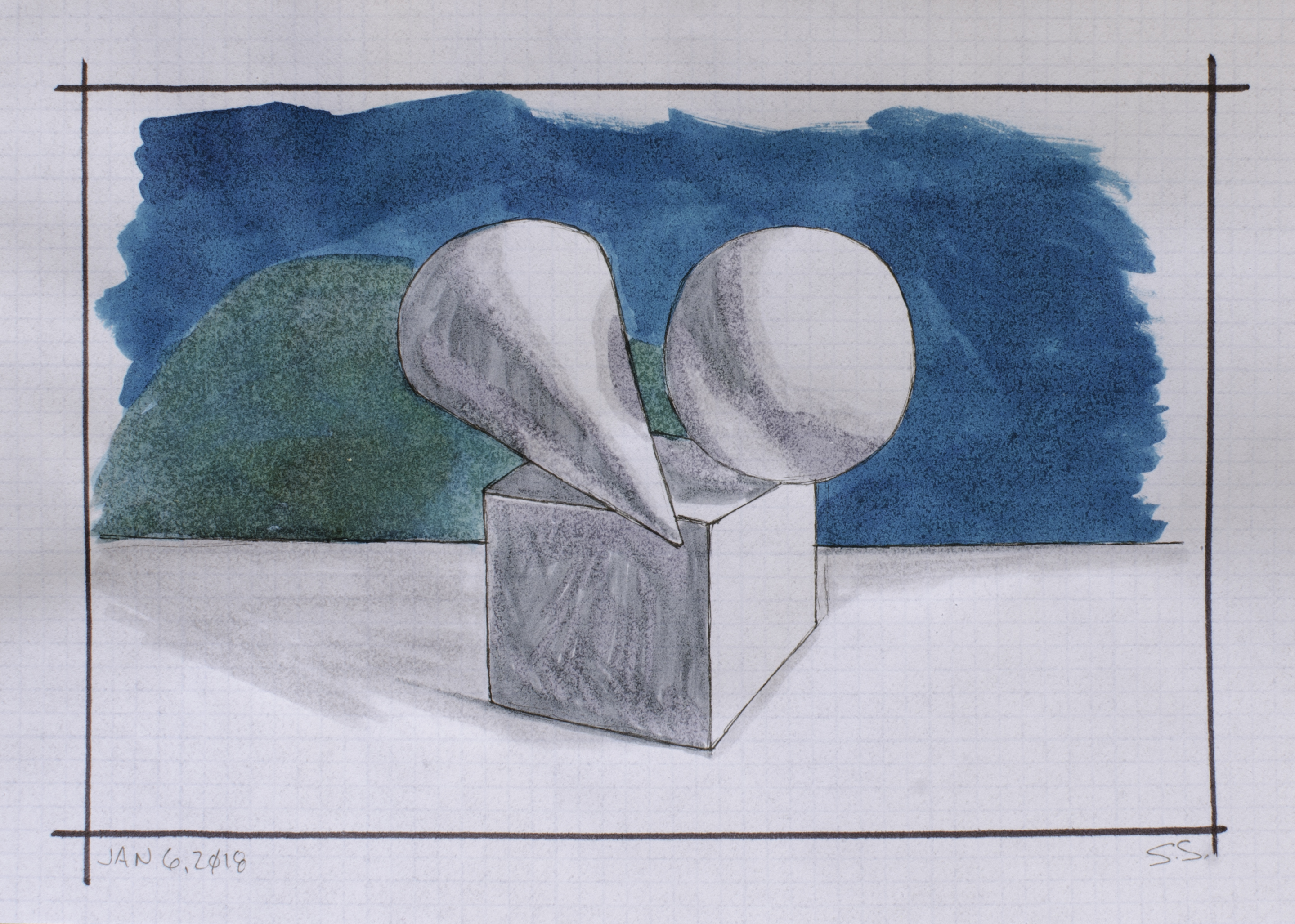 Jan 6, 2018, Copic & Koi pens on Vellum, 7″ X 5″